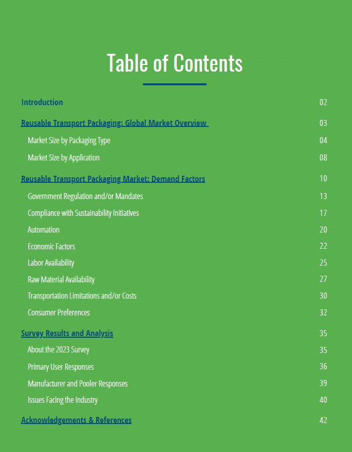 Learn more -The Reusable Transport Packaging: State of the Industry Report is informed in part by anonymous insights gleaned from a broad audience of industry experts, including: