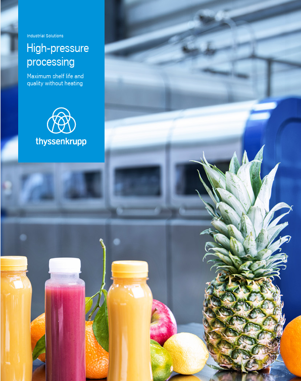 Consumers want natural, fresh products – ideally without additives and without the loss of nutrients caused by heating. At the same time, around 30% of food is still being thrown away, some of it before even being sold. High pressure processing by thyssenkrupp allows gentle preservation of food by high pressure – without additives or heat. The latter is an important difference to “classic” thermal pasteurization, even though HPP is also known as “high-pressure pasteurization”. Products are processed in their packaging. It works for vacuum and modified atmosphere packs and for plastic bottles. The result: much longer shelf life and maximum product safety and therefore more satisfied customers. At the same time the texture, look, nutrients and taste of your products remain intact. And all of that is achieved while HPP being environment-friendly and free of waste.
